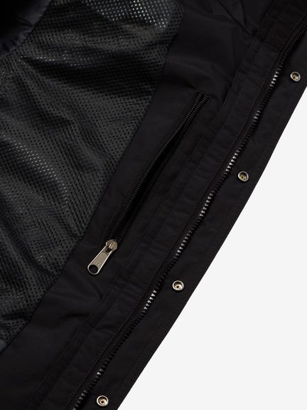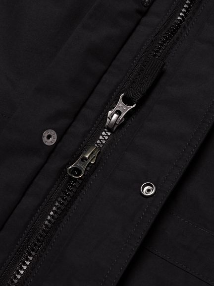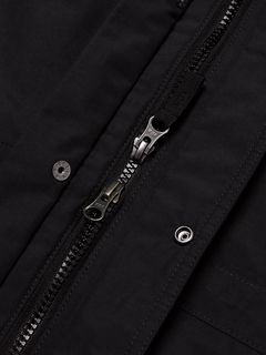 耐久性の高い70デニールナイロンを表生地に使用し、やや長めの着丈で保温性を確保。フロントはダブルフラップ仕様で防水性を高めています。内側の専用ファスナーでインナーを連結できるZIP IN ZIPシステム対応。