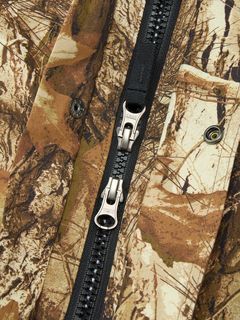 耐久性の高い70デニールナイロンを表生地に使用し、やや長めの着丈で保温性を確保。フロントはダブルフラップ仕様で防水性を高めています。内側の専用ファスナーでインナーを連結できるZIP IN ZIPシステム対応。