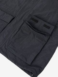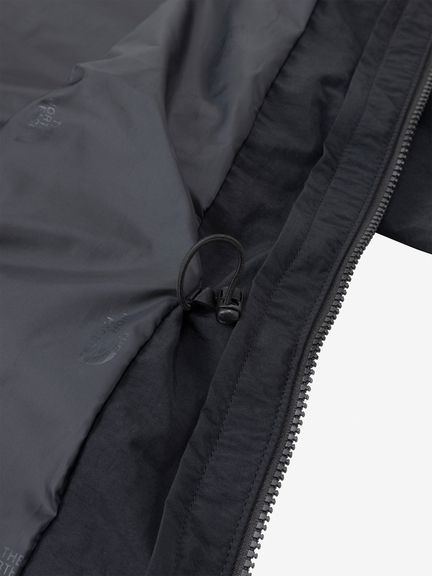 表地はコットンライクな表情のタスランナイロンを使用。フッ素化合物を含まないはっ水剤を使用したはっ水加工を施しており、多少の雨や汚れに対応します。襟にフードを収納できるビルトインフード仕様です。裾のアジャスターでフィット感やシルエットの調節が可能。