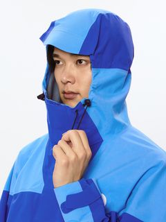 表地は非フッ素メンブレンによる、70デニールのePE GORE-TEX PRODUCTS 3層素材を採用。適度な厚みがありつつ、しなやかな質感を実現しています。脇下のベンチレーションファスナーにより、すばやく衣服内温度の調節が可能。襟元裏側にはフォグベントを配置。フロントはダブルフラップ仕様で雨や雪の浸入を抑えます。両サイドのファスナーポケットは、パックのウエストベルトに干渉しにくい位置に設置しています。