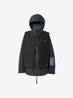専用ポンプで保温性の強弱を調整可能で収納力にも長けたベストと、スマートフォンを収納可能な大型クリアウィンドウを含めた多数のポケットを備える防水ジャケット。その二つのプロダクトは単体での着用はもちろん、レイヤリングにおいても相互的に機能するようにデザイン・設計されています。ベストはジャケットの内側に着用すれば保温性を担保するミドラーとして、ジャケットの外側に着用する際は収納力を最大限に発揮するギアベストとして機能。ジャケットも内側に着たベストに直接アクセス可能なポケットの配置や着方の幅に対応するシルエットなど綿密に設計されています。