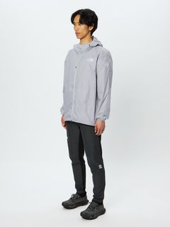 - 薄地チタンスパッタリング加工素材/パックの上から着用できるカバーオール仕様/フィット性を高めた小さめのフード設計/裾ドローコード仕様/フロントファスナー逆開仕様/リフレクターロゴ
