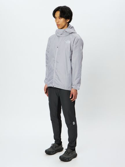 無駄を省いたデザインで、ファスナーはフロント下部の1カ所のみ。ポンチョのように着脱できる必要十分な長さのファスナーは、上下から開閉することができ、ベンチレーションの代わりと内部へのアクセスを可能にします。また、背面部にゆとりを設けることで、パックを背負ったまま着用することができます。
