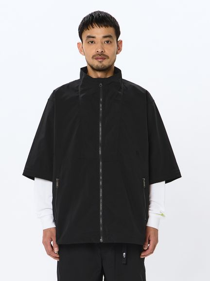 適度なストレッチ性も持ち合わせています。生地にははっ水加工を施し、多少の雨や汚れに対応。UVプロテクト(UPF50+、紫外線カット率95%以上)機能付き。袖がファスナーで着脱できるコンバーチブル仕様で、半袖と長袖の2WAYで着用可能です。裾はドローコードでシルエットの調節ができます。