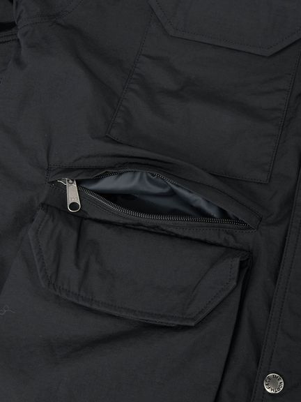 表地は、異形中空糸を使用した軽さが特徴のナイロン素材。コットンライクな自然な風合いで、はっ水性も備わっています。ポケットは左右の胸とサイドにマチ付きのフラップポケットを配置。裾はアジャスターによりフィット感の調節が可能です。