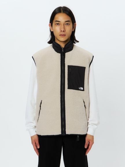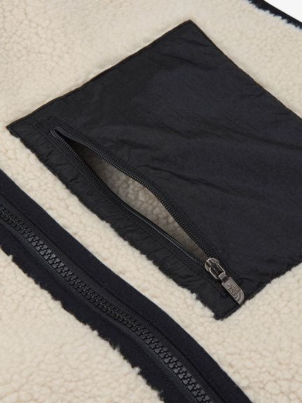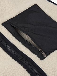 布帛側はパーテックス ダイヤモンドフューズを採用。特殊な異形断面糸を使用した生地はフラットな表面で汚れなどが付きにくく、耐摩耗性、耐久性に優れているため、擦れや汚れが気になるシーンで重宝します。フリース側はポリエステルのボアフリースで保温性を考慮。ボリュームを抑えめにし、インナーとしても使いやすい仕様です。左胸に配置した布帛のファスナーポケットは、デザインのアクセントにもなっています。