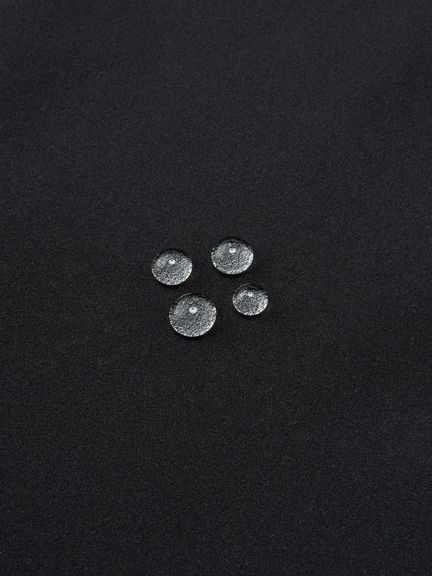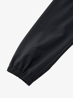 やや厚みのある生地は適度にハリのある素材感。素材の表側にはっ水加工を施し、多少の雨や雪に対応します。肌側は異型中空断面糸を用いており、ドライな肌触りを実現しています。袖口はフィット感のよいゴム仕様。裾はドローコードでシルエットの調節が可能です。