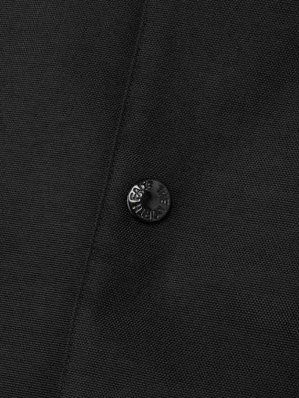 はっ水加工を施したナイロンオックス生地は適度な厚みで、ヘリテイジ感のあるマットな質感が特徴です。裏地は軽く着心地のよい起毛トリコット生地。フロントのドットボタンは、開衿で着用しても襟の形が美しい位置に配置しています。