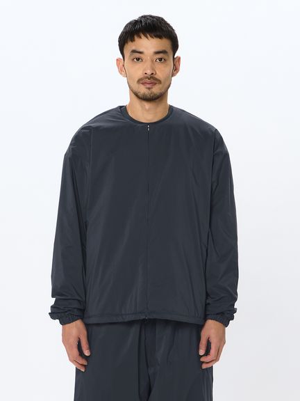 裏側素材には、通常のポリエステル繊維に比べて1/2の軽量性を誇る、8本の突起を持つリサイクル中空繊維を採用。中間着としてデッドエアーを溜めやすく、通気性にも優れているため、衣服内のドライで快適な保温状態を長く維持します。袖口ゴムシャーリング仕様、裾はドローコード仕様です。