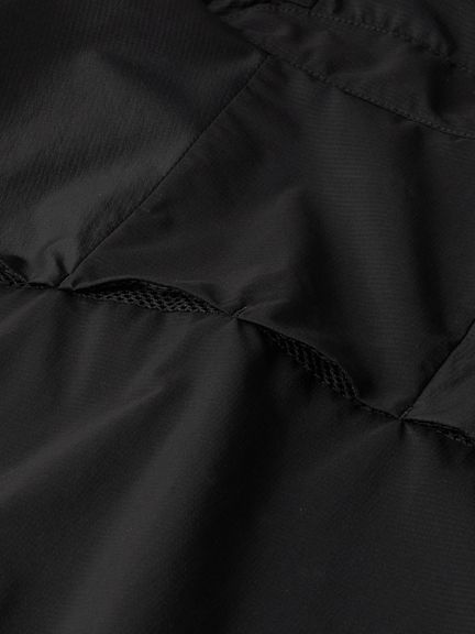 - 肌面に凹凸がある二重織素材/脇・背中ベンチレーション/左右脇ファスナー付きベンチレーションポケット/フード裏パッカブル仕様/裾・袖口・フードゴムシャーリング仕様/リフレクターロゴ