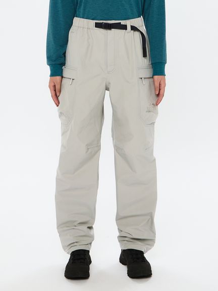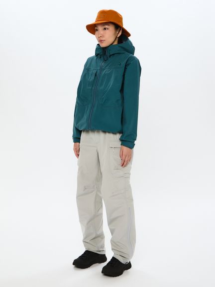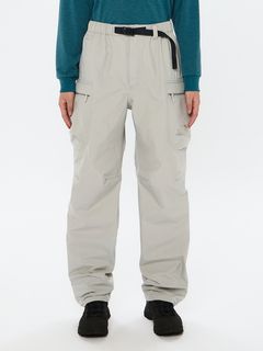 生地は軽量で柔らかなePEメンブレンを採用したGORE-TEX PRODUCTS 3層構造。しなやかな風合いを持つ40デニールのリップストップ素材です。両サイドには収納力の高いカーゴポケットを配置。着脱なしでの操作性を考慮し、左側のカーゴポケットの中にはインナーにアクセスできるファスナーを配置しています。裾はフィット感の調節がしやすい片引きのドローコード仕様。膝上まで開くファスナーにより、靴を履いた状態での着脱が可能です。コンパクトに収納でき携行に便利なスタッフサック付き。