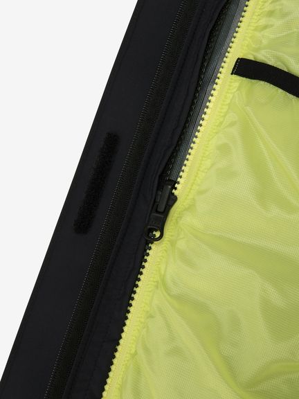- 防水通気素材FUTURELIGHT/フロントファスナー部分ダブルフラップ仕様/ワンハンドアジャスター対応フーデッド/裾ドローコード仕様/フラップ・ファスナー付きサイドポケット/ジップインジップ対応