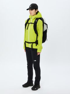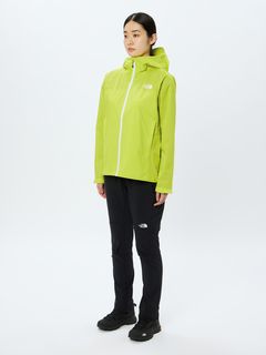 ビーズ加工を施した透明ラミネートフィルム・Clear-Dは肌触りがよく、汗をかいてもべとつきにくいのが特長です。フロントは止水ファスナーを使用し、防水性に加え軽量性も重視。ワンハンドアジャスター対応のフードは、フィット感を高めつつ、視界をさえぎりにくい形状に仕上げています。携行に便利なスタッフサック付き。