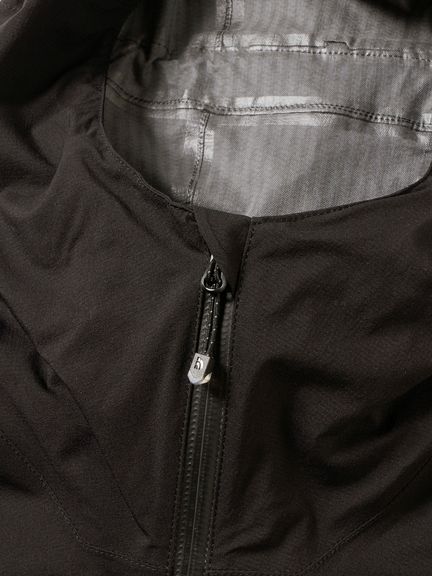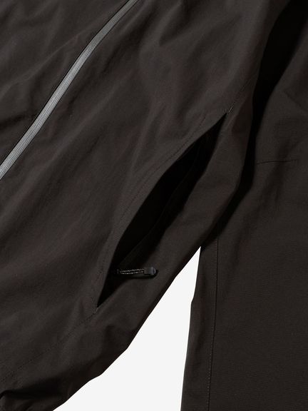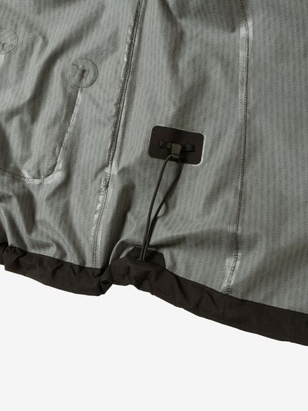 - 裏面ビーズ加工の2.5層シェル/ワンハンドアジャスター対応フーデッド/両脇ファスナー付きポケット/裾ドローコード仕様/内側ゴムに裾ドローコード収納可能