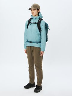 - 肌離れを考慮した二重織素材/フロントベンチレーションポケット(右ポケットにセキュリティポケット)/フード裏パッカブル仕様/両脇ファスナー付きポケット/裾ドローコード仕様/ムレを排出するサイドのベンチレーション仕様