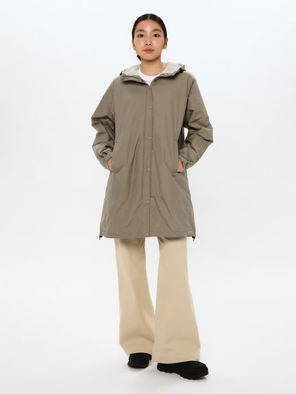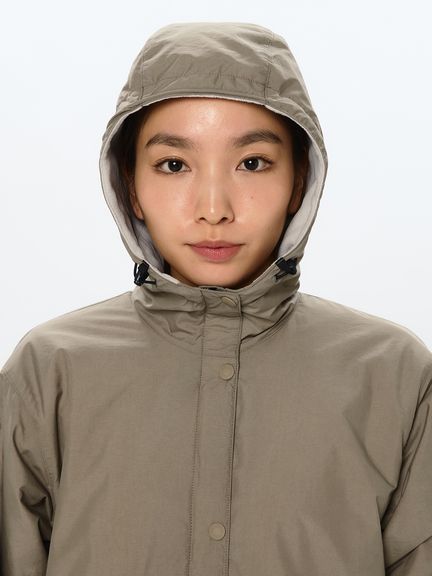 表地にはっ水加工を施しているので、多少の雨や雪に対応します。身頃とフードの裏地は肌触りがよく保温性もある毛足の短い100マイクロフリース。袖には独自開発の保温素材・HEATSEEKERを封入。軽くかさ高があるポリエステルの中わたで、あたたかさを高めています。