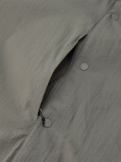 表地ははっ水性があり雪も付きにくいソフトシェル素材を採用。裏地は中空糸を使用したオクタフリース素材。保温性とともに吸水性にも優れています。袖や脇部分は袖通しを考慮してフラットな面に切り替え。身生地と同色のスナップボタンもデザインのアクセントになっています。