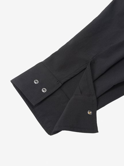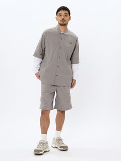 適度なストレッチ性も持ち合わせています。生地にははっ水加工を施し、多少の雨や汚れに対応。UVプロテクト(UPF50+、紫外線カット率95%以上)機能付き。袖がファスナーで着脱できるコンバーチブル仕様で、半袖と長袖の2WAYで着用可能です。両サイドにファスナーポケットを配置。左胸に配置した刺繍ロゴがデザインのアクセント。
