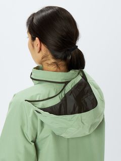 フードは取り外し可能で、やや高めに設計した立ち襟がジャケット使用時の美しいシルエットを演出。