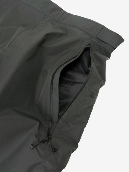 ボトム両サイドには衣服内の温度調節に役立つベンチレーションを設け、大腿部に電子機器などの収納に便利な大型ポケットを配置。