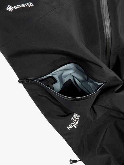 同シリーズで開発したRTG GORE-TEX Jacket(NS62525)とのセットアップによって、ジャケットのフロントの左側にあるアクセスファスナーからビブポケットへのアクセスが可能になります。