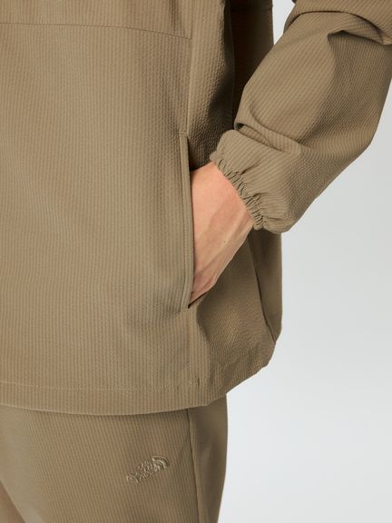 高通気とUVカットを両立した機能素材を採用した「Light Lounge」コレクションのカーディガン。スリット状の高通気部分から風を通す特殊構造体による高通気性と生地表面で紫外線の侵入を抑制。凹凸のある表面感により汗によるベタつきを軽減して、快適さを高めています。少しゆったりしたサイズ感で、両サイドにポケットを配置。UVガード(UPF30-50+、紫外線カット率90%以上)機能付き。