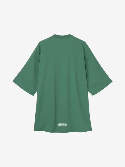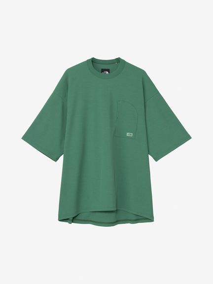 やわらかなふくらみが特徴の素材は、ストレッチ性と軽さを兼ね備え、上半身の動きにスムーズに追従します。凹凸のある生地は肌離れがよく、汗をかいてもドライな着心地。ハーフドーム型の胸ポケットはサングラスなどが収納できるサイズ感。ポケット入口の位置と大きさは、収納したものが落ちにくい設計です。
