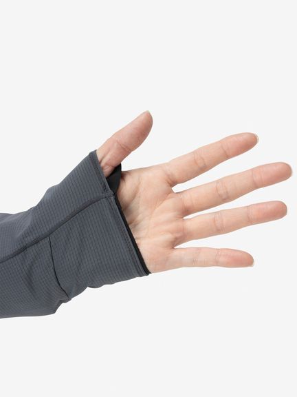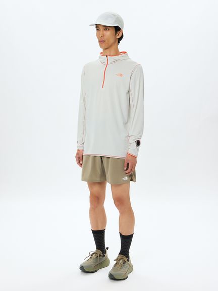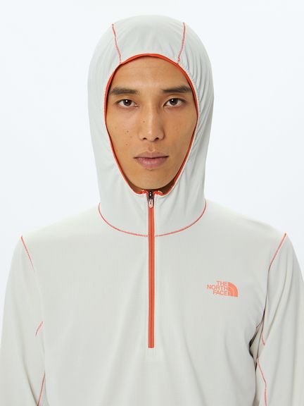 通気性、UVカット、遮熱性を備えたTHE NORTH FACE独自素材「BREEZERANGE PRO」を採用。光の透過を抑えるセラミック粒子を含有させながら、通気性を高める生地組織に仕上げています。衣服内の空気を循環させてムレを軽減し、肌に有害な紫外線を遮断(UPF50+、紫外線カット率95%以上)、太陽光による熱を日傘と同程度に反射して暑さを和らげます。