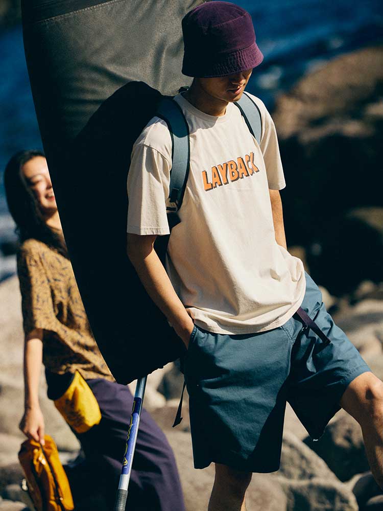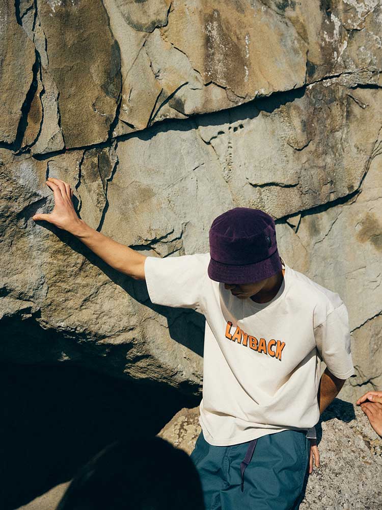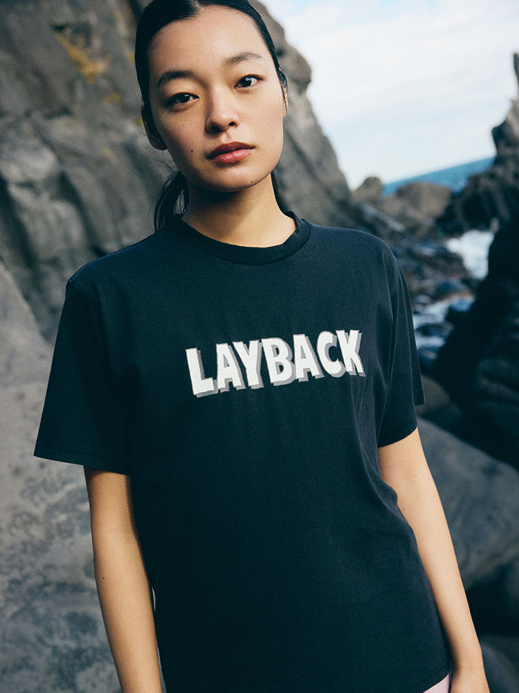 ・クライミングやサーフィンの技名にもなっている「LAYBACK」のポップなデザインのロゴをフロントに配置