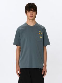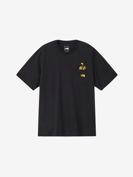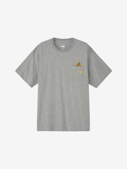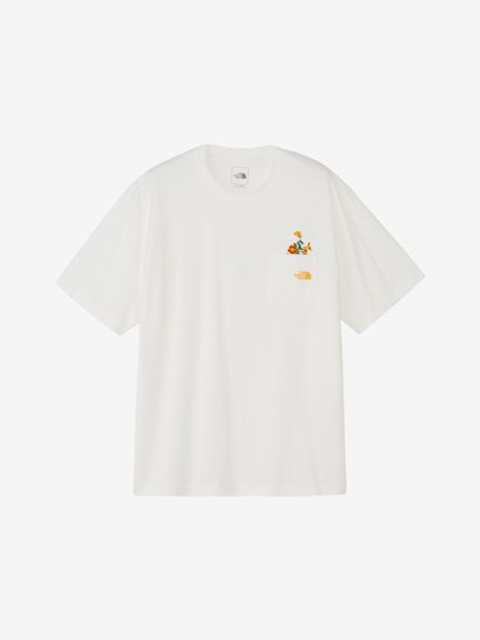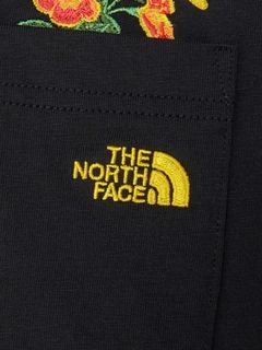 ・左胸ポケットの上に、鮮やかな彩りの花を組み合わせたロゴ刺繍を配置