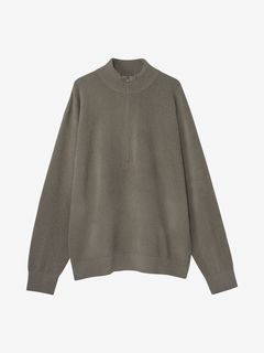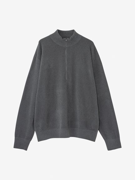 フリースジャケットのような軽量感と通気性が特徴のハーフジップのニットウエア。