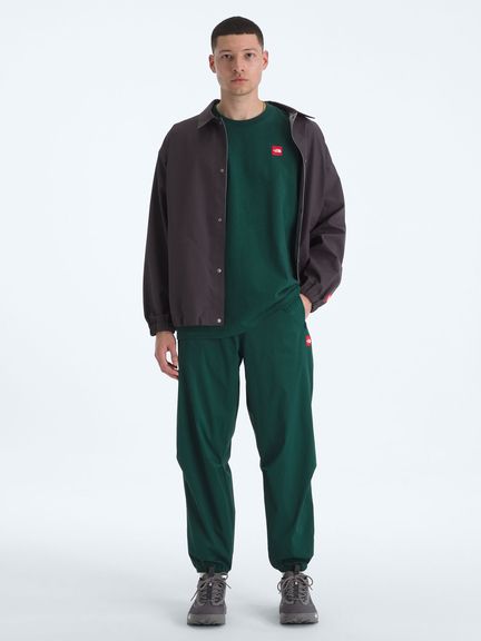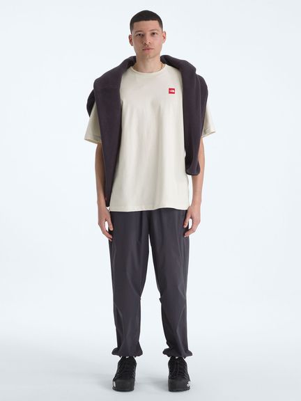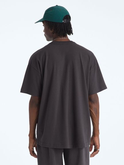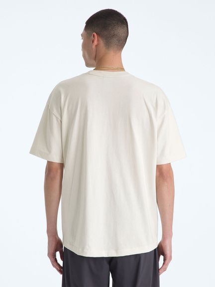 シンプルなデザインの半袖Tシャツでシルエットはゆったりと着られるリラックスフィット。柔らかく重量感のあるヘビーコットン生地を使用しており、襟はリブ仕様でフィット感を高めています。左胸に配したレッドボックスの刺繍ロゴがアクセントとなり、シンプルなデザインでカジュアルな街着として日常のさまざまなシーンで着用しやすい一着です。