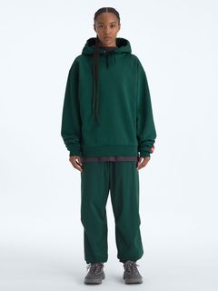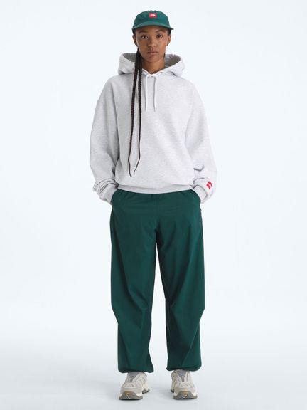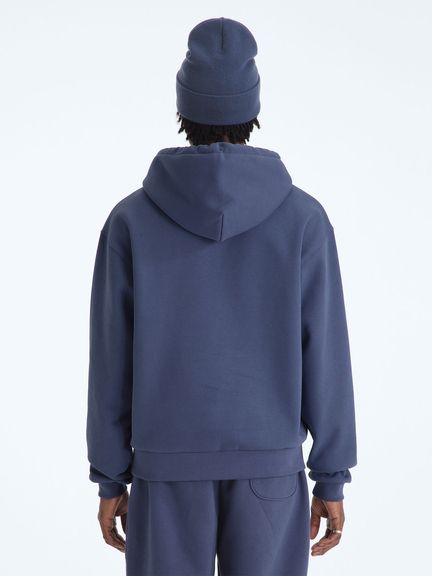 プルオーバータイプのスウェットパーカであり、フードは立体感のあるダブル構造。袖口と裾にはリブを施し、ほどよいフィット感を確保しています。