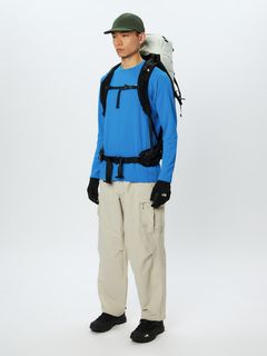左胸にロゴプリントを配置したシンプルなデザイン。長期の縦走登山や春から秋のキャンプなどに適しています。