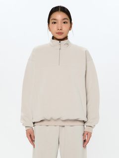 嵩高性と保温性を兼ね備えたハーフジップのトップス。