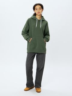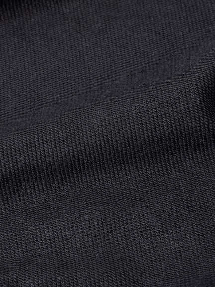 膨らみがあり、しなやかな生地は、体の動きにスムーズに追従します。裏面は肌触りがよく吸湿性のある裏毛素材。ポリエステル100%の生地は軽く、手軽に洗濯できるイージーケア性も魅力です。