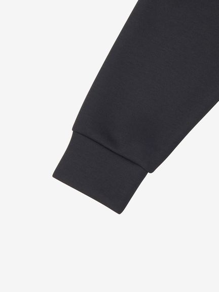 ポリエステル素材をメインに使用したストレッチ性が高いニット生地を、ダンボール状の気室空間のある3層構造に形成。コットンライクで肉厚な質感ながら軽く、多く備えたデッドエアが高い保温力を発揮します。裏糸には、吸放湿性をもつやわらかなセルロース素材を配置することで、快適な肌当たりの着心地です。UVプロテクト(UPF50+、紫外線カット率95%以上)機能を装備。