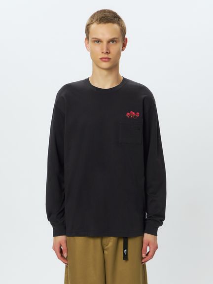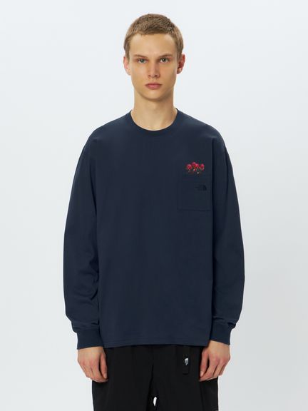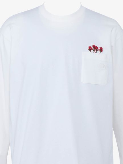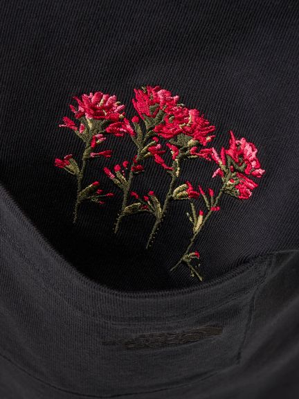 左胸にポケットを配置。ポケットの上に、ヨセミテ国立公園に咲くインディアン・ペイントブラシの花を刺繍で表現しています。