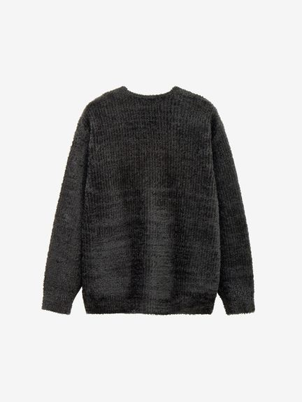 中空異形断面仮撚り糸を芯糸に巻き付けたフェザーヤーンを採用したニットは、軽量感と保温性を兼ね備えています。糸抜けしにくい組織なので、家庭で手軽に洗濯できるイージーケア性も魅力です。
