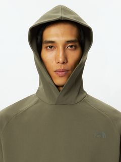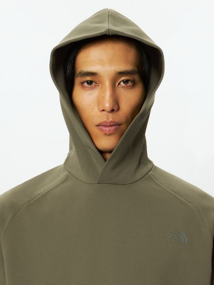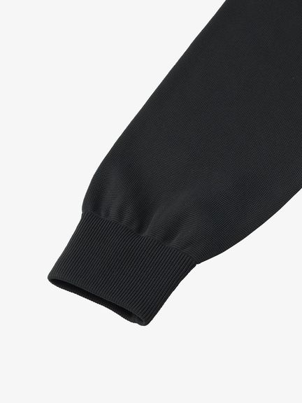 伸縮性が高く軽量なニット生地のフーディタイプの汎用性が高いスポーツウエアです。