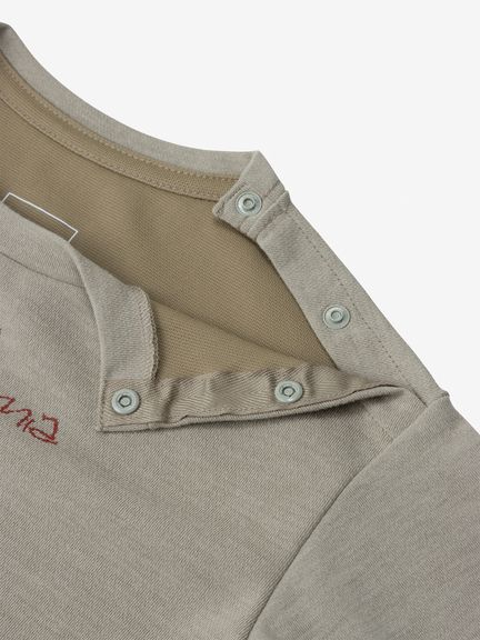 頭を出しやすいように襟から肩にかけてドットボタンつき