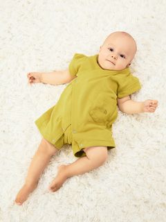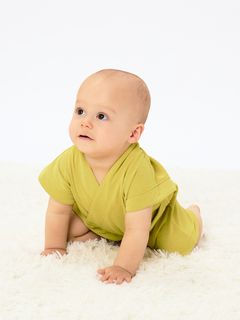 高い通気性と遮熱性を備えた機能素材を採用した、甚平風ロンパース