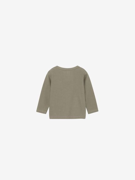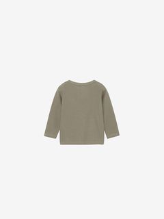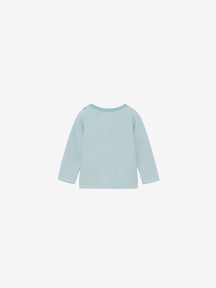 風合いのよいオーガニックコットンを使用した、パイル地の長袖Tシャツ。脱ぎ着がしやすいよう、左肩はドットボタンで開く仕様です。短いパイル地を採用しており、通常のループの長いパイル地に比べて引っ掛かりにくくなっています。生地には適度な厚みがあり、優しく包むような肌触り。汗を吸い取りやすいのも特徴です。
