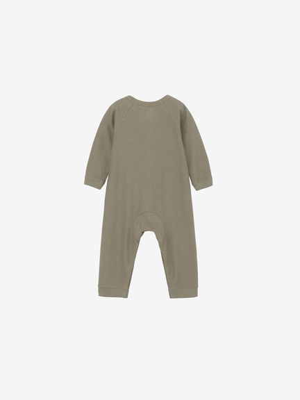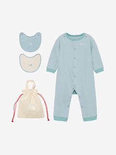 風合いのよいオーガニックコットンを使用した、長袖ロンパースとスタイ2点のセット。