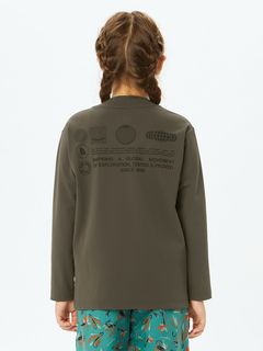 地球のグリッドをモチーフにしたグラフィックを背面に配置。さまざまな表示パターンを並べています。アウトドアシーンのみならず、デイリーユースもしやすい1着です。