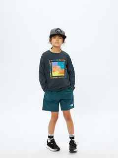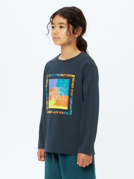 アクティブシーンで子どもたちのモチベーションがアップする、カラフルなスクエアロゴプリントのグラフィックをフロントに配置。着用することで、キャンプやトレッキング、ランニングなどのアクティビティを快適に、テンション高く楽しめる1着です。