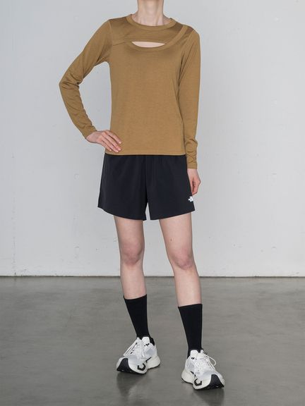 ポリエステルとメリノウールを組み合わせることで、ドライ感と肌触りの良さを両立し、ランニングシーンから日常まで幅広いシーンで活躍します。UVケア(UPF15-30、紫外線カット率85%以上)機能付き。