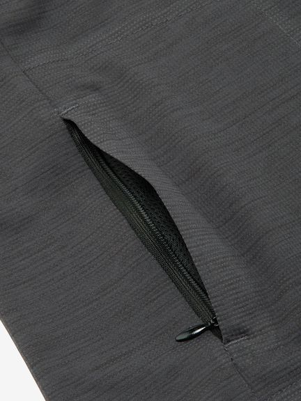 - ポリジン・ステイフレッシュ加工(銀イオンによる抗菌防臭加工)/肌面はっ水糸使いにより汗冷え軽減効果/右脇ファスナー付きポケット