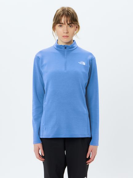 水分を保持しないポリエステルはっ水糸を肌面に使用することで、汗によるべたつきや冷えを軽減します。表面は、なめらかで速乾性も備えたポリエステルニット。かいた汗を素早く吸い上げて拡散し、汗戻りを軽減します。UVプロテクト(UPF50+、紫外線カット率95%以上)機能付き。