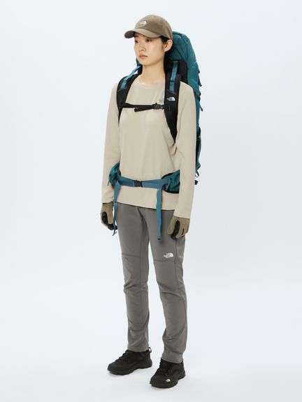 左胸にロゴプリントを配置したシンプルなデザイン。長期の縦走登山や春から秋のキャンプなどに適しています。